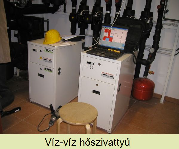 Fúrt kútpárral üzemelő víz-víz hőszivattyús fűtés-hűtés, vízellátás-csatornázás