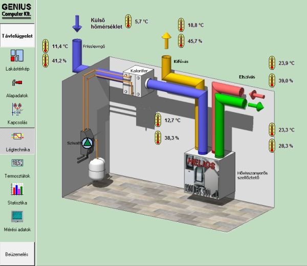 2. Másik lehetőség rekuperátoros (hővisszanyerős) szellőzés kialakítása. Ebben az esetben a mellékhelyiségekből elszívott levegő hőenergiájával felmelegítjük a beszívott hideg levegőt, és ezt a felmelegített levegőt fújjuk be az állandó tartózkodású helyiségekbe. Ezzel a megoldással nem vész el a szellőző levegő energiája. Korszerű épületeknél a szellőztetés hőenergia igénye megközelíti a hőveszteséget, tehát a fűtési költség közel felére csökkenthető. A legfontosabb azonban a mindig friss, egészséges levegő biztosítása és a penészesedés kiküszöbölése.